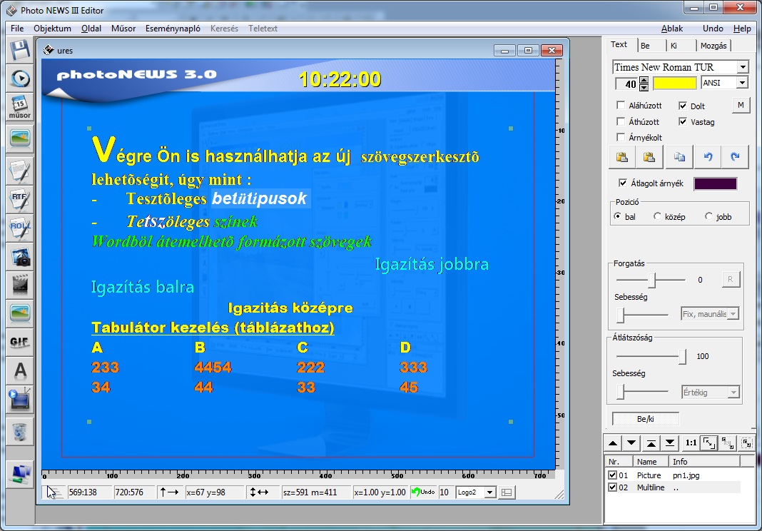 Most már egyszerűbbén is elhelyezhet szövegeket a képújságba. Az új text box kezeli a RICH formázott szöveget, így akár a Wordböl is átemelhet szövegeket. A szöveg részeit tetszőlegesen formázhatja, színezheti.