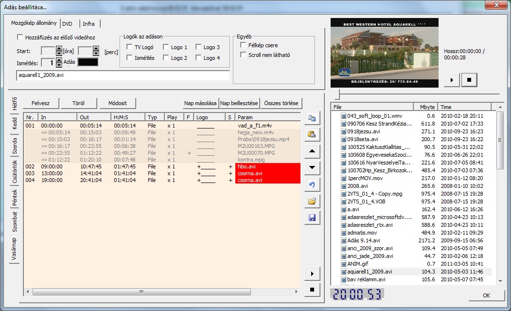 Módosított megjelenés.Hiányzó állományok esetén a program pirossal jelzi a hiányzó file-t, így Ön egy pillantással meg tud győződni arról minden a helyén van e. Az esetleges időpont ütközéséket a program szintén pirossal emeli ki