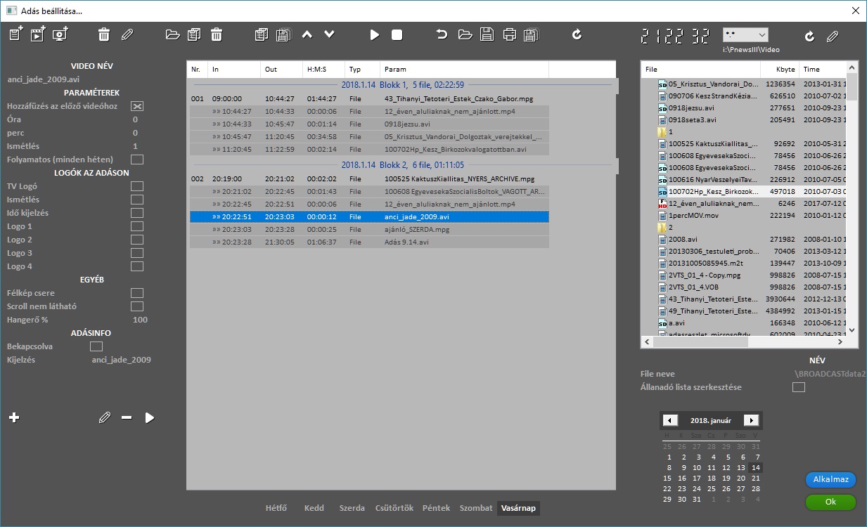 Adáslista lejátszása a megadott időpontokban: